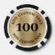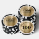 Personalise these poker game chips with your business logo in the front and your own text on the back. This design with a gold faux metallic background features is numbered with a 100 denomination, so it can be used for playing, and it can be edited with any value amount.