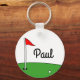 Custom golf keychain with putting green design. Personalised round button key chain with name and putt hole. Custom golfing present for golfers and fans. Suitable for men, women and kids. Sports theme Birthday gift ideas.