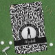This custom design features a female golfer silhouette set on a realistic golf ball image. The golf ball is placed on a chic black circle that is bordered with curved text "GOLF GOLF GOLF GOLF" in white font. A black band holds a template for a monogrammed name or custom text also in white. The background is chic black with a white pattern of modern swirls and leaves. All colours in this design may be customised! If you have any questions regarding this or any of my designs please contact beachpausedesigns@gmail.com. Custom requests accepted.