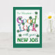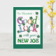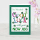 A Good Luck with your New Job greeting card to personalise, with brightly coloured lettering, four-leaf clovers and a horseshoe for luck! A text-based,
