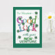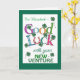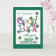 A Good Luck with your New Venture greeting card to personalise, with brightly coloured lettering, four-leaf clovers and a horseshoe for luck! A text-based,