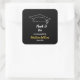This is a black, white and faux gold sticker. A graduation cap is above the words 'thank you' in white script. Next the sticker says 'for celebrating with us'. You can personalise the sticker with the graduate's name in faux gold script and graduation year in white text.