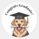 Custom Graduation Cute Golden Retriever Dog Classic Round Sticker