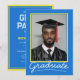 Celebrate your graduate's milestone with this elegant, customisable graduation invitation card. Featuring a classic royal blue and yellow school theme and space for your graduate’s photo, name, school, and event details, this design offers a timeless way to invite loved ones to the big day. Perfect for high school or college graduations!