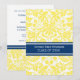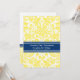 Graduation party invitation custom card in elegant and sophisticated bright lemon yellow, dark navy blue and white classic vintage floral damask pattern. Customise this grad announcement card by adding the year of your graduation and your graduation party details.