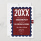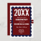 Custom Personalised Graduation Party Invitations with a Scalloped Edge and red and navy blue colours. A fun and colourful graduation party invite for a boy or anyone with red and blue school colours. A fun and bold faded grunge text font. Just add your own graduation party details to make your own custom graduation party invitations.