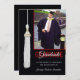 Red & Black custom graduation party invitation. Add the date, graduate's name and photo to the front of this Graduation card, and personalise info on the back. Card designed by Rycky Creations; white tassel original artwork©delightful-doodles. Contact artist for a card with your own school colours!