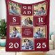 Celebrate your graduate and give a special personalised gift with this custom photo collage graduation blanket. This unique graduate photo collage blanket is will be a treasured keepsake. Customise with 6 of your favourite senior or college photos, and personalise with graduating year, monogrammed name, high school or college.