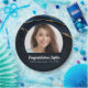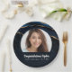 Navy blue and gold agate/marble "Congratulations" graduation party custom photo paper plates. Add your picture and personalise with your name, school name, and graduation year.