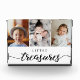 Using a beautiful and modern Typography for the words "Little Treasures", elegant script and classic font together. Customise this photo block with the grandkids photos for the grand parents to treasure and cherish Simpe, with 3 photo spots, thoughtfully laidout. A wonderful gift for grandma and grandpa, mum, dad. Something to keep for yourself too.