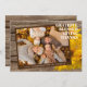 Unique, classy, trendy, pretty and decorative Thanksgiving holiday card. Unique, classy, trendy, pretty and decorative Thanksgiving holiday card. Cute GRATEFUL BLESSED GIVING THANKS text and room to customise or personalise with a photo and names (or family name) of your choice. With cute classic warm yellow fall Mums flowers on a weathered looking grey rustic farmhouse inspired barnwood planks pattern background design. And a customisable season greeting poem on the backside of the card.