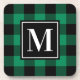 Custom Green and Black Buffalo Plaid Monogram Coaster