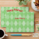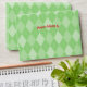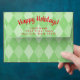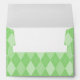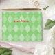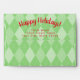 Please deliver to custom Merry Christmas envelopes with green argyle pattern. A7 preprinted envelopes with handlettered season's greeting on the back flap. Elegant personalised envelopes for Holiday party invites, greeting cards, xmas events, office mailing and more. Pretty brush script handwriting design. Custom handlettering calligraphy typography template. Chic envelopes with printed family surname and return address. Happy Holidays!