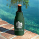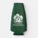 This forest green real estate company bottle cooler is perfectly customised for a realtor who specialised in houses near the wilderness or woodlands. The white silhouette of trees behind a log cabin home and personalised with your agent and realty business name for marketing in the backwoods.