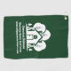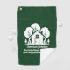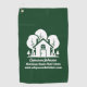 This forest green real estate company golf towel is perfectly customised for a realtor who specialised in houses near the wilderness or woodlands. The white silhouette of trees behind a log cabin home and personalised with your agent and realty business name for marketing in the backwoods.