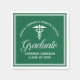 This custom green medical school graduation party napkin features classy white typography under a medical caduceus and your college name for the class of 2024. Customise with your graduating year under the elegant calligraphy for great personalised university graduate decor for a nurse or doctor.