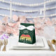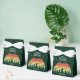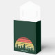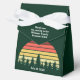 Cool forest sunset family reunion party favour boxes in green for a nature outing or camping trip. This custom party favour box features a beautiful vintage sunset over a forest of pretty trees along with your personalised text.