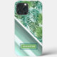 Contemporary light, medium and dark green and white tropical palm tree fronds pattern.With room to customise or personalise with name, monogram or initials of your choice. Beautiful, modern and cool cover for the trend-savvy and art-loving hip trendsetter, artsy motif lover who wants to protect their phone from dust and dirt, wear and tear. This design is available Apple iPhone 6, 7 and 8 Plus, 10 or X, XR, XS , 11, 12, and 13 Mini and 14 Pro Max cellphone cases. Show off your personal style, look fashionable trendy and feel stylish with a unique design on a mobile device accessory of your choice.