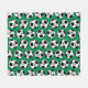 Personalised soccer ball patterned fleece blanket for soccer players to use when they're not scoring goals on the field, and for their parents to support their kids and stay warm at chilly games! Makes a unique team gift for travel tournaments. Design features a pattern of soccer balls that are customised with the player's uniform number. Includes green, black, and white colours.
