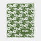 Custom Green White MONOGRAM Leaves Fleece Blanket