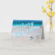 Folded beach themed Christmas cards with angled text for your custom greeting on the front. Two starfish, hung with ornaments, decorate the corner over smooth, tropical sand and waves at the shore. Inside, customise with a greeting and signature also printed over a beach sand image.