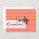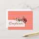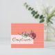 Elegant greeting card with pink stripes and floral elements.