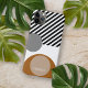 Contemporary black stripes and grey, taupe beige, and warm coffee brown coloured circles and stripes pattern on a white background. With room to customise or personalise with a name, monogram initials, or short text of your choice. Beautiful, modern, and cool cover for the trend-savvy and art-loving hip trendsetter, artsy motif lover who wants to protect their phone from dust and dirt, wear and tear. This design is available in Apple iPhone 6, 7, 8, 10 or X, XR, XS, 11, 12, 13 Mini, 14, 15 Plus, and Pro Max cellphone cases. Show off your style, look fashionable trendy, and feel stylish with a unique design on a mobile device accessory of your choice.