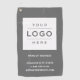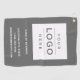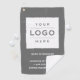 Company branded golf towel features your professional business logo and custom preferred business information - website, location, email, phone, etc. - text that can be personalised. Dark charcoal grey and white colours can be changed.