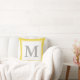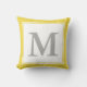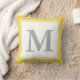 A large grey monogram appears on a white background. The monogram has a white border. Personalise the yellow, white and grey throw pillow with your initial/monogram.