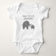 Custom grey safari elephant baby romper bodysuit for new baby. Cute personalised name jumpsuits for infants girls and boys. Fun wildlife / zoo animal vector design with funny quote. Add your own name to personalise this jumper suit. Cute baby shower or 1st Birthday gift idea for newborn child or infant. Safari / jungle theme toddler design. Cool babyshower presents for new parents / new mum / dad. Create your own for grandchild, grandson, granddaughter, nephew, cousin etc. Sizes for one and two year old, 6 and 18 months old.