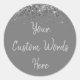 Custom Grey & Silver Glitter Birthday Party Favour Classic Round Sticker