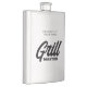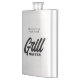 Custom Grill Master drink flask for BBQ chef. Cool black and white script typography design with custom name. Fun Birthday gift idea for cook, dad, husband, uncle, brother, grandpa, retired person, boss, coworker, colleague etc. Personalised metal hip flask for alcohol.