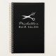 Custom hair salon barber shop appointment planner. Personalised weekly / monthly agenda book. Make your own cover design with custom background colour. Elegant gift idea for hairdresser, barber, teacher, hair stylist, beauty salon, hair colouring specialist etc. Small school supplies and office presents for him or her. Great for planning clients. Stylish script typography template with professional hair cutting scissors silhouette. Little black book with gold colour spiral.