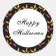A custom sticker with a colourful pattern of Halloween candy corn in yellow and orange. Click Customise It to change fonts, sizing and more.