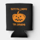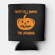 Custom Happy Halloween party can coolers with carved pumpkin face. Orange and black party supplies and accessories for home or office. Scary jack o lantern design with pumpkin head carving and spooky typography template. Add your own pesonalized family name. Cosy decorations for men women and kids. Custom cosy beverage holders for drinks. Trendy home decor and decorations. Great for Halloween night, trick or treat and more.