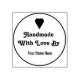 Does your business sell handcrafted products? A custom business stamp makes it easy for your customers to see they're getting a handmade product. A heart is at the top. In the centre, the text says Handmade with Love By. At the bottom, there's placeholder text for your own name or the company's name.