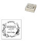 This "Handmade with love" rubber stamp features a floral frame with custom name.