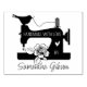 This "Handmade with love" large stamp features a sewing machine with a bird and flowers, a name and slogan.