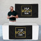 A custom printed black banner that can be customised to your preferred dimensions depending on their usage. Multiple Sizes and indoor and outdoor material also available. Customise the business banner with your business logo and create your own table banner sign for your craft shows and vendor events. Perfect for trade shows, pop up shops, expos, business events, shopfront and all types of businesses. Attach them on the walls, vendor booth tables etc. Select the size and option that is best for you!