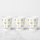 Elegant HAPPY HANUKKAH paper cup, showing faux gold and silver STAR OF DAVID and MENORAH in a tiled pattern. Text reads HAPPY HANUKKAH with a placeholder name, and is CUSTOMIZABLE, so you can PERSONALIZE it by adding your name or other text. Ideal for Hanukkah celebrations, and with customisation can be suitable for any Jewish-themed event. Choose from a wide selection of Hanukkah party supplies by Berean Designs.
