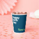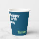 Celebrate in style with this Happy Birthday paper cup showcasing a sleek, minimalist design featuring sage green text against a deep navy blue background. Perfect for modern birthday parties, this cup adds a sophisticated yet fun touch to your tableware collection.