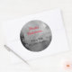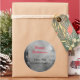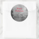 A custom Happy Halloween sticker in red blackletter and black rustic letters against a spooky Halloween sky with misty trees, gothic ravens and a cloudy full moon in black, white and grey.
