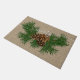 Beautiful classic beige taupe coloured jute burlap linen textile fabric weave pattern with seasonal image of pine cones and needles, and a classic fun Merry greeting wish that you can customise or personalise to your liking. This December season design was created for the interior designer, or for the cottage country style lover who enjoy winter and Christmas holiday themes. Original and modern products for those who love decorating the porch, patio or backyard seating are of their home, log cabin, cottage, lake or river vacation home.