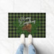 Custom Happy Holidays Green Black Checks Cabin Doormat