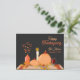 Celebrate the warmth of the season with this beautifully designed Happy Thanksgiving postcard. Featuring a festive fall scene with pumpkins, glowing candles, and scattered autumn leaves, this postcard sets the perfect tone for gratitude and gathering. Customise it with your name, family greeting, or special message to share heartfelt wishes with friends and loved ones. Ideal for seasonal greetings, holiday announcements, or thoughtful thank-you notes.