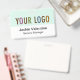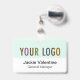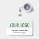 Easily personalise our professional hard plastic name badge with your own company logo, employee name, job title, or other custom text. It's made of durable PVC plastic. You can customise the logo background colour to match your corporate colours. Available with a lanyard, metal clip, or retractable clip. The dimensions are 3.38 inch x 2.13 inch. No minimum order quantity and no setup fee.