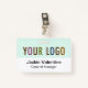Easily personalise our professional hard plastic name badge with your own company logo, employee name, job title, or other custom text. It's made of durable PVC plastic. Designed in mint green and other colours with a modern minimalist design by MISOOK. All colours are customisable. Available with a lanyard, metal clip, or retractable reel. The dimensions are 3.38 inch x 2.13 inch. No minimum order quantity and no setup fee.