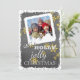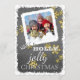 Unique, classic, trendy, pretty and decorative Holiday card. Fun 'Have A Holly Jolly Christmas' quote text written in typography on black and gray chalkboard background, with faux gold snowflakes pattern. With room to customize or personalize with photo of your choice.