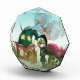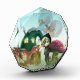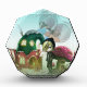 dwarf houses with a doll and a heart frame with the photo and a bit of silver purine on both sides.