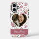 Celebrate the bond between you and your feline companion with this beautifully designed, customizable phone case. Featuring a soft palette of dusty rose, cream, and sage green, the background is adorned with an aesthetic mix of botanical florals, whimsical hearts, and tiny paw prints.